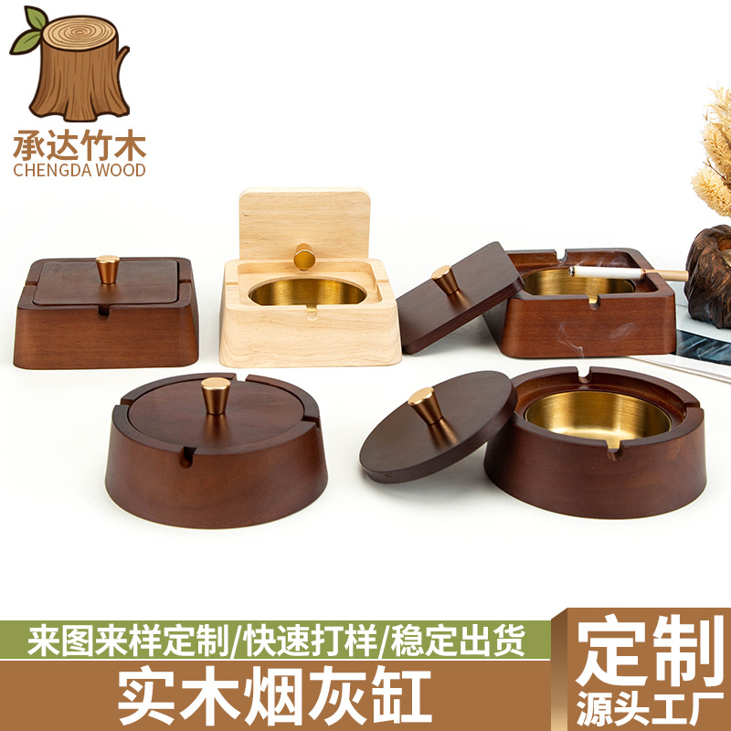 实木烟灰缸中式带盖轻奢商务酒店高端家用防飞灰高级感创意烟灰盅