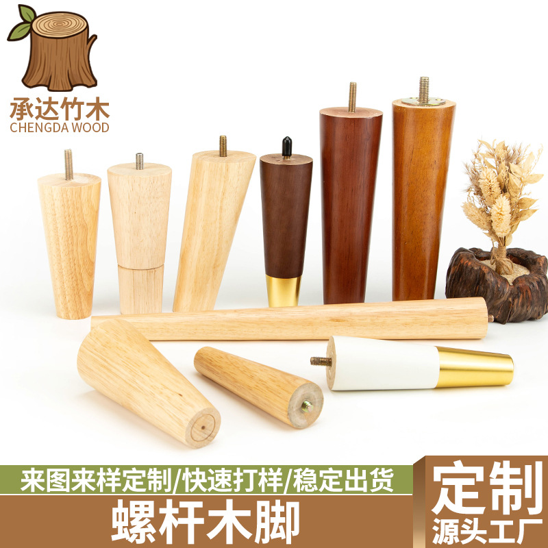橡胶木实木沙发脚桉木圆锥沙发脚床脚茶几腿 北欧木桌脚 批发木脚