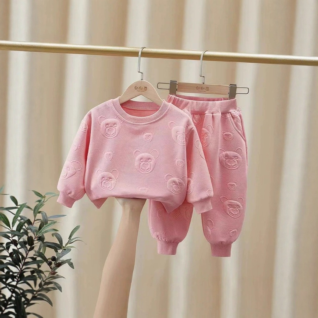 2025新款女童套装春秋款洋气小童粉色卡通休闲两件套