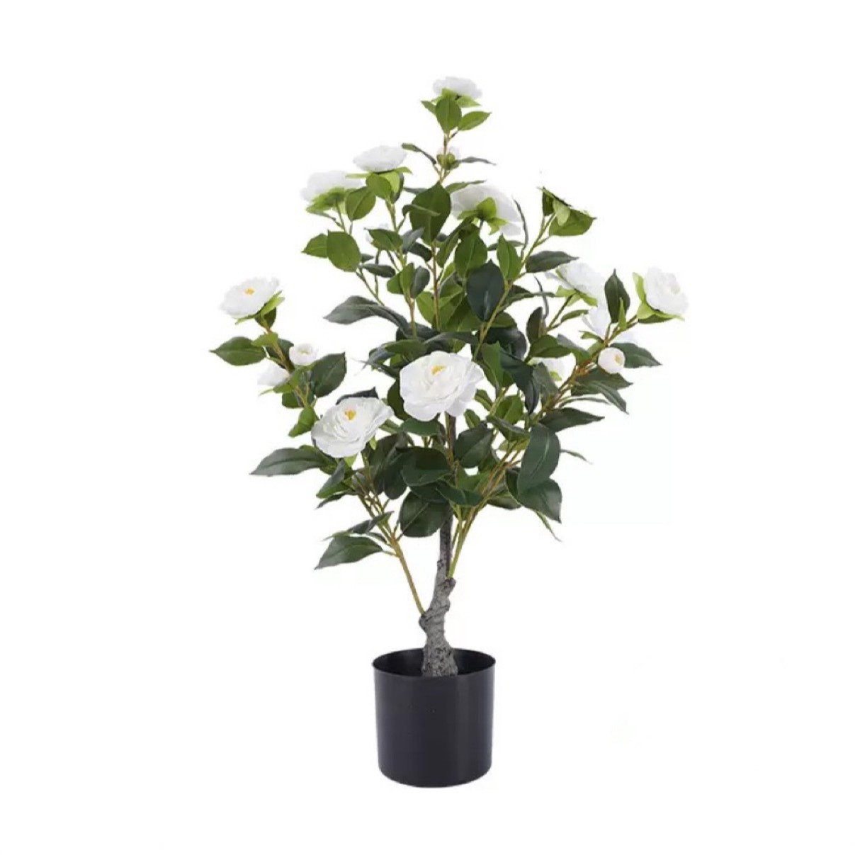 跨境人造茶花树盆栽仿真茶玫花树居家橱窗造景设计装饰假山茶花树