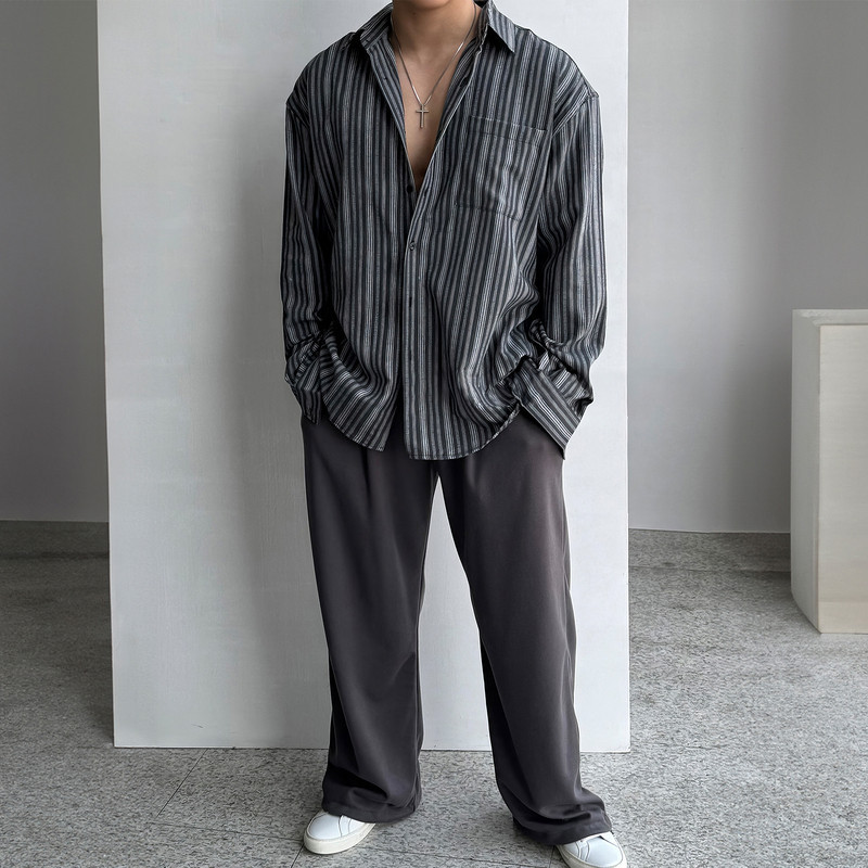 轻薄条纹长袖衬衫男士春秋复古轻熟风轻奢衬衣慵懒松弛感休闲上衣