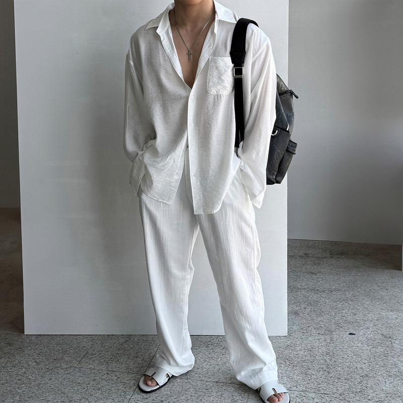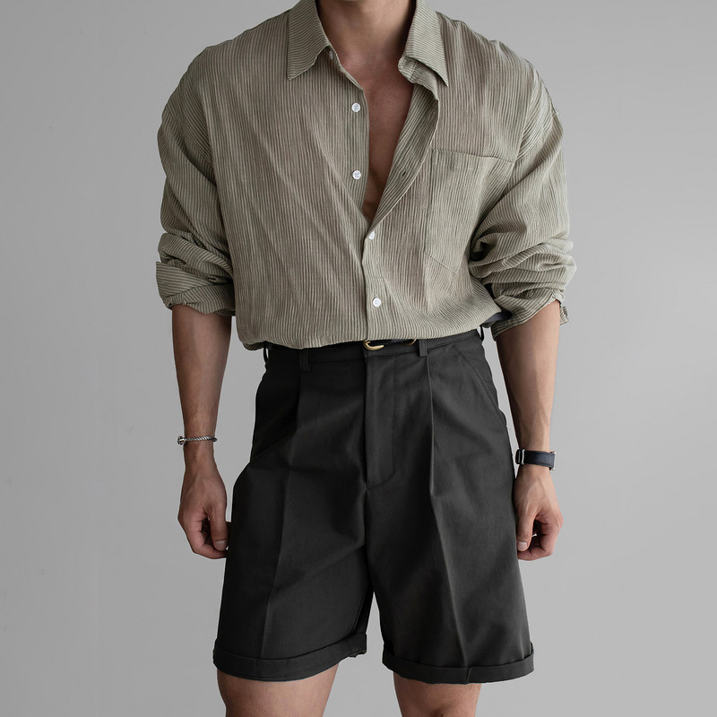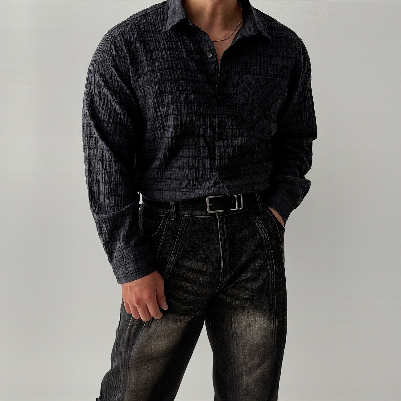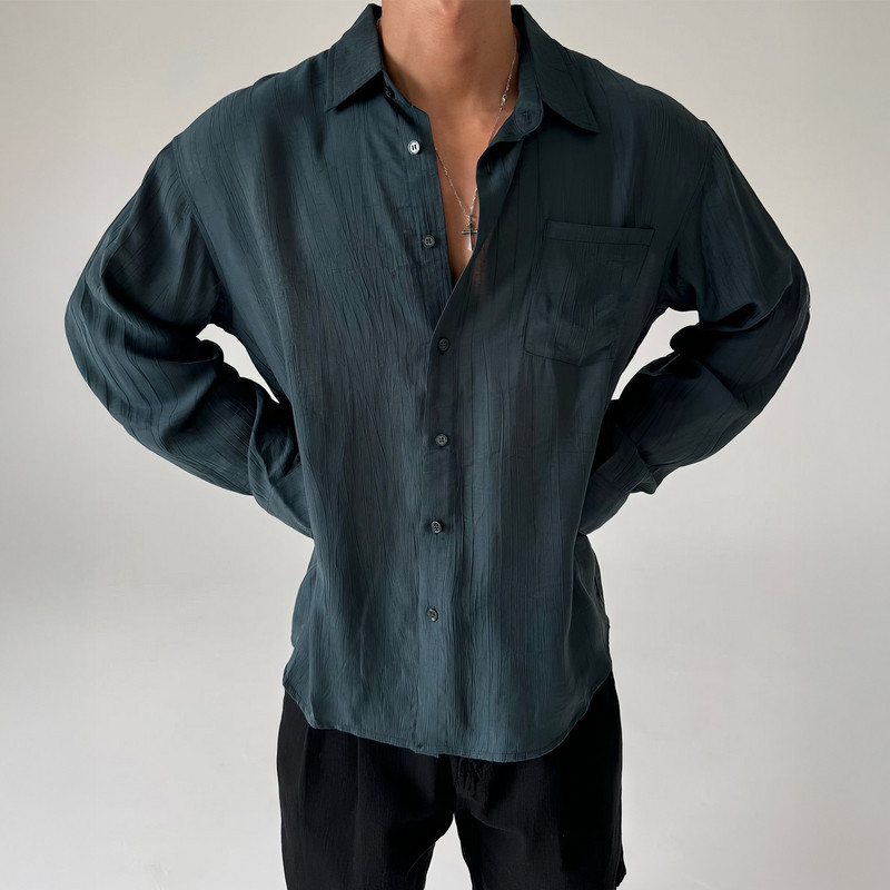 夏季轻熟风肌理感长袖衬衫男士美式小众设计宽松百搭免烫商务衬衣