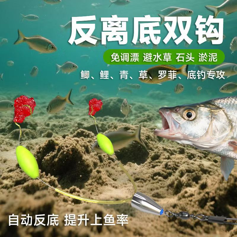 反离底双钩免调漂避水草钓组成品翻转鱼钩鲫鱼鲤鱼台钓路滑鱼钩