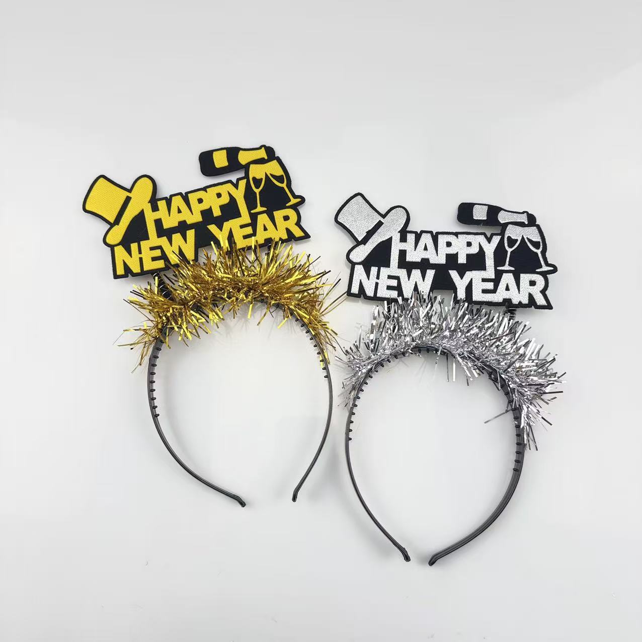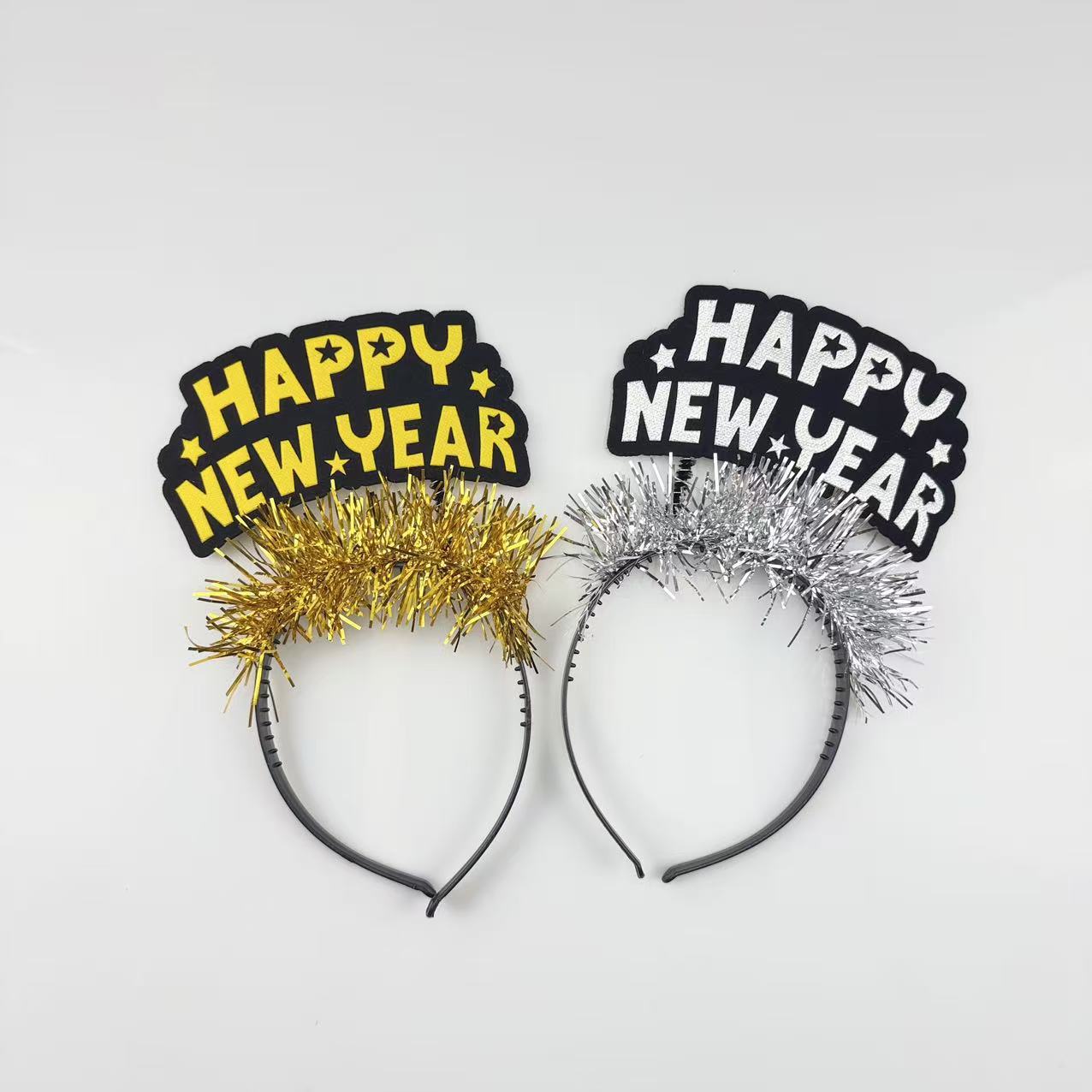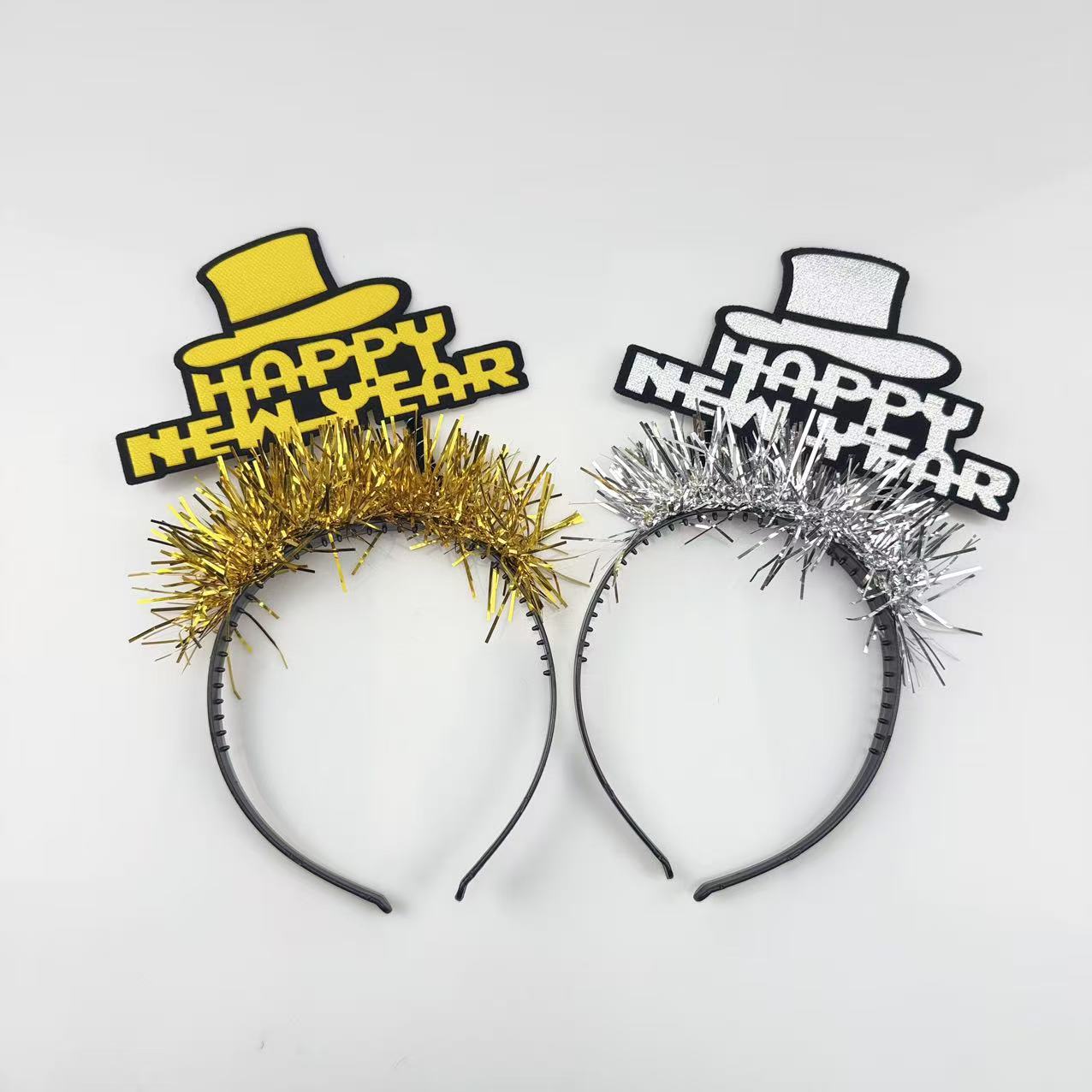 2027跨境亚马逊新款新年头箍发饰跨年快乐装饰金色银色道具头饰