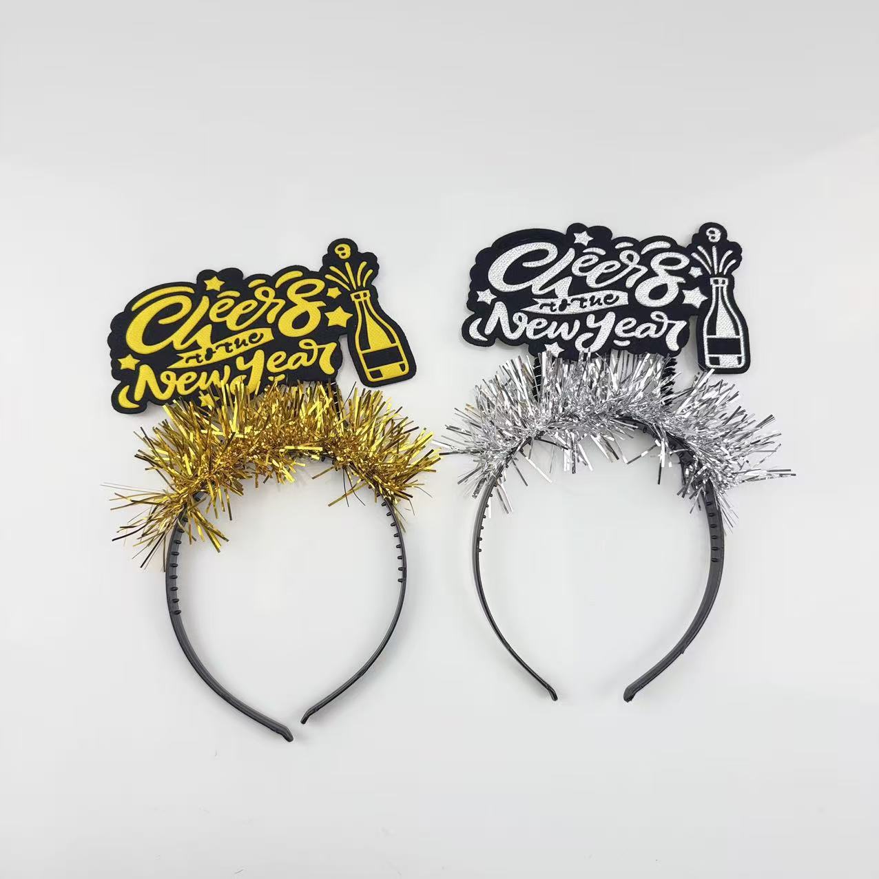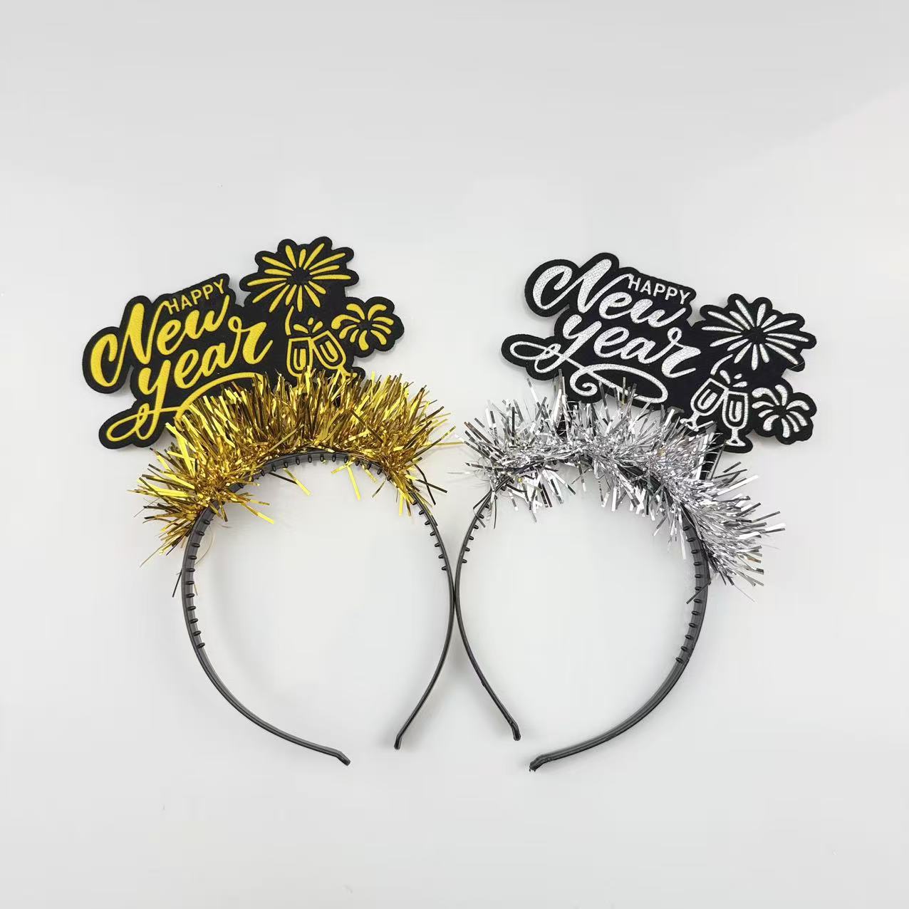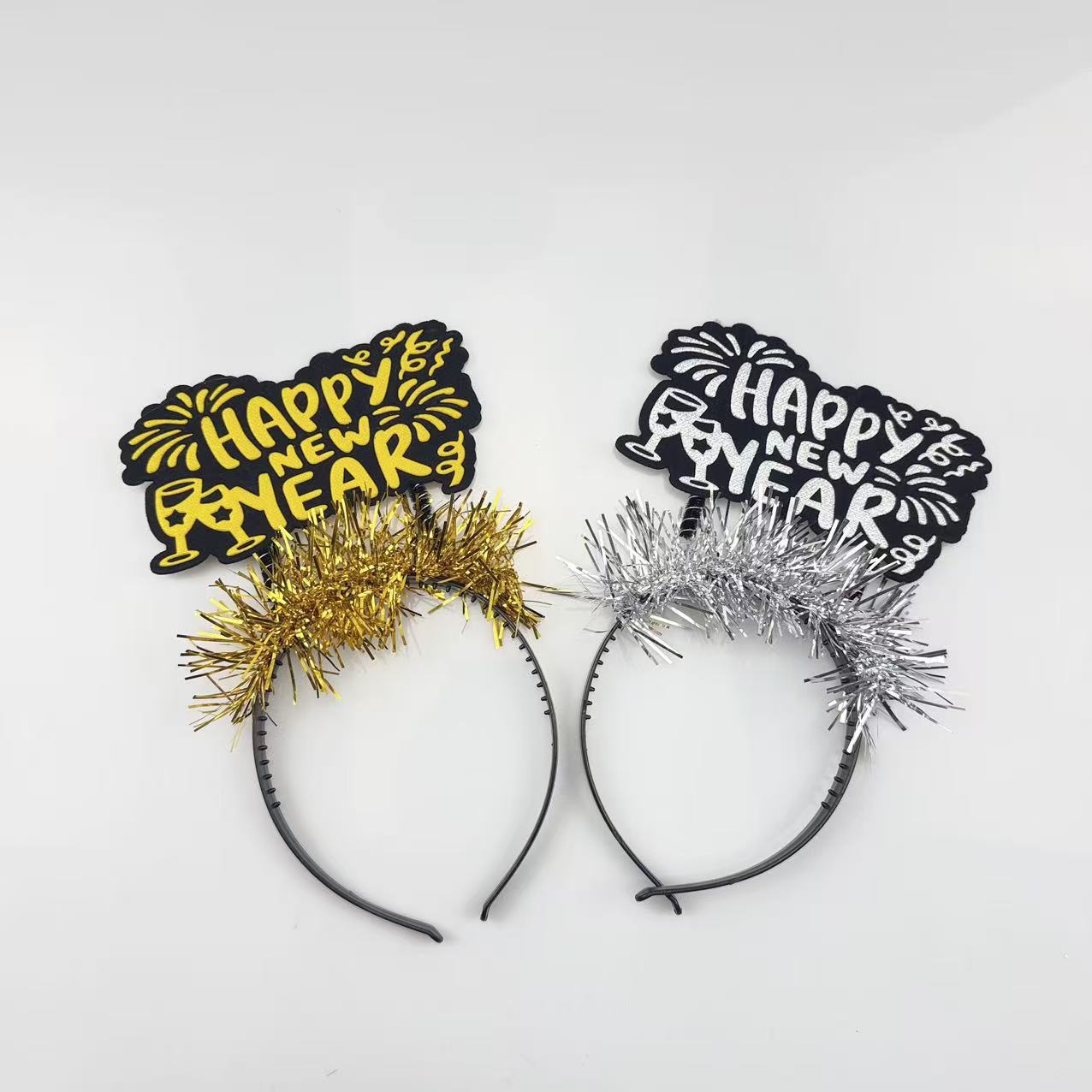 2027跨境亚马逊新款新年头箍发饰跨年快乐装饰金色银色道具头饰