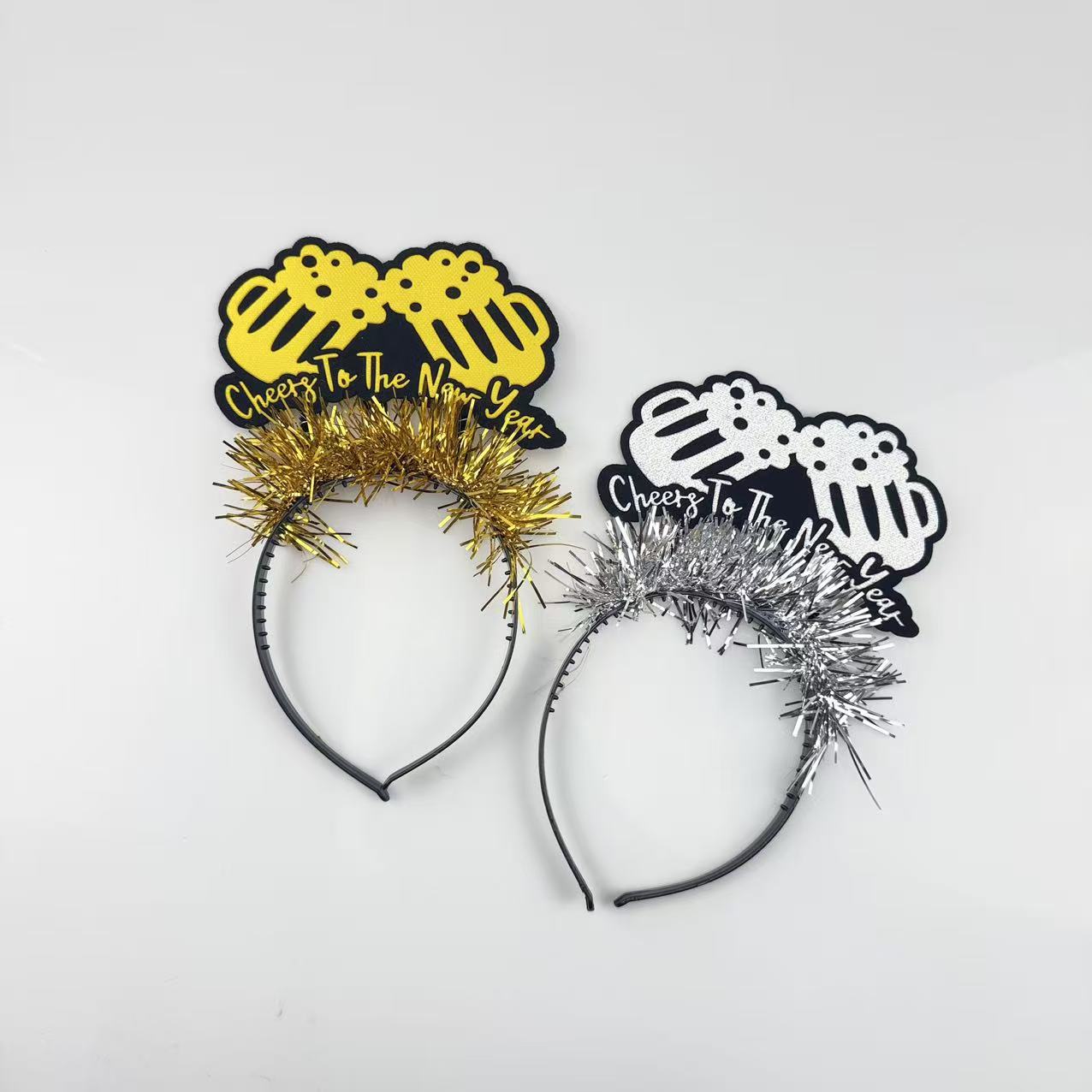 新款新年派对发箍金色银色啤酒杯头饰 搞怪拍照道具 节日装饰头扣