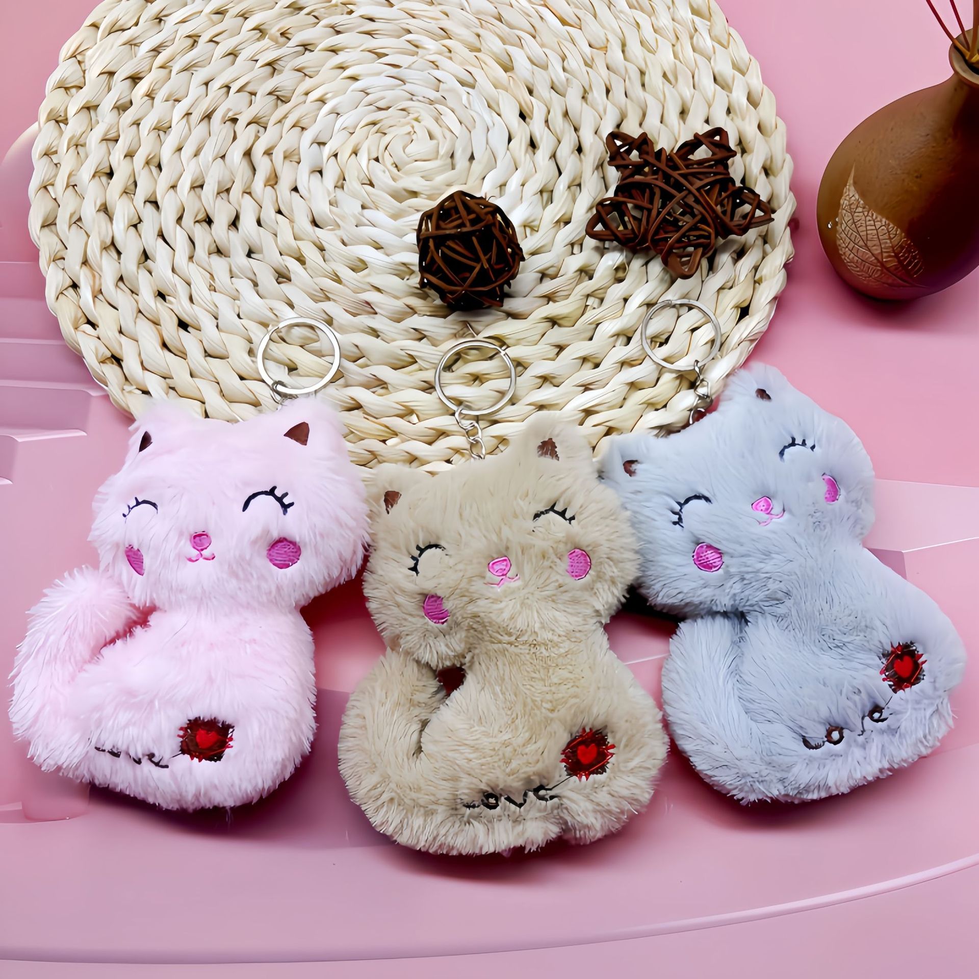 创意解压眯眼猫咪毛绒钥匙扣挂件 幸运草多色闺蜜朋友礼物包包挂