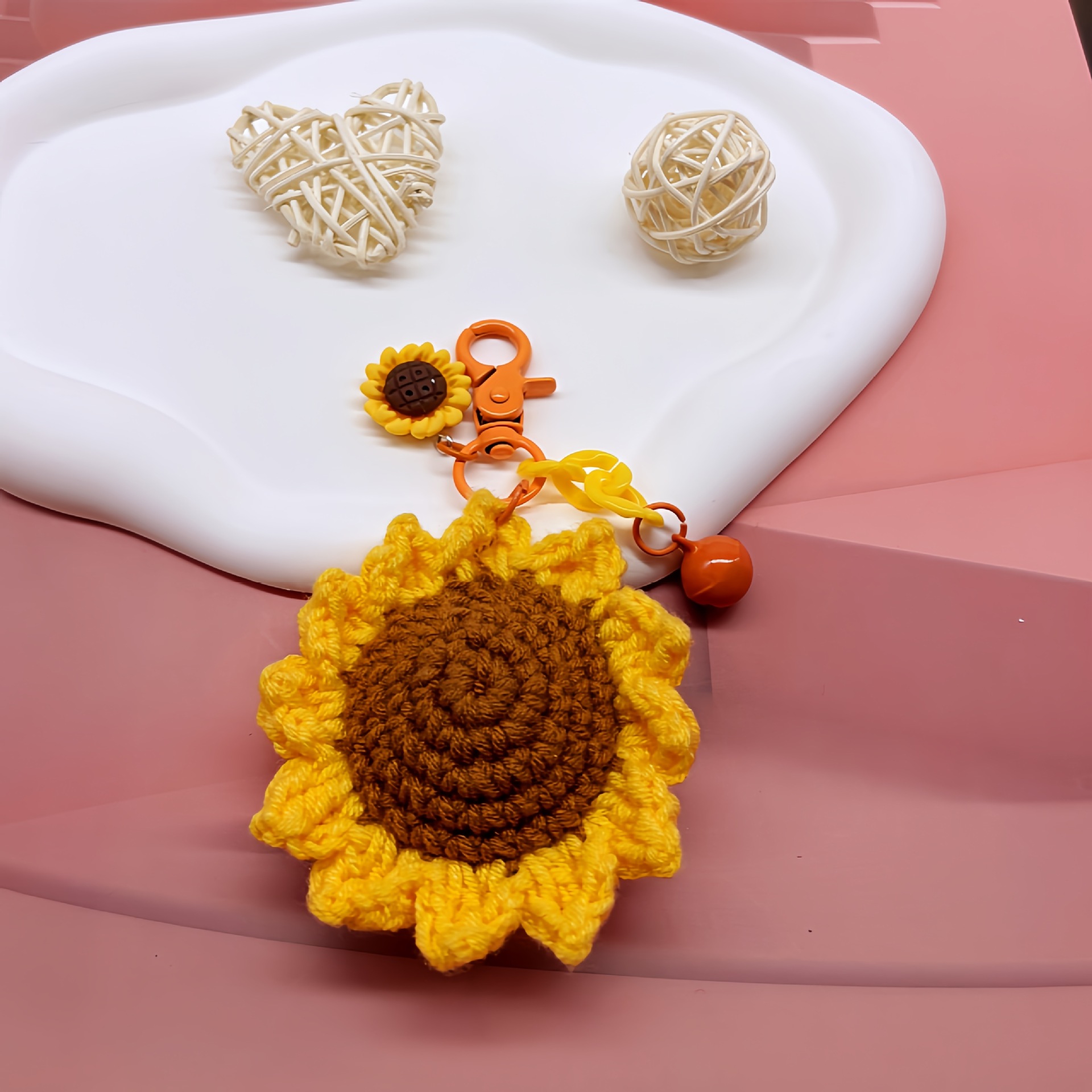 新款手工编织毛线向日葵铃铛钥匙扣挂件创意ins风网红爆款厂家