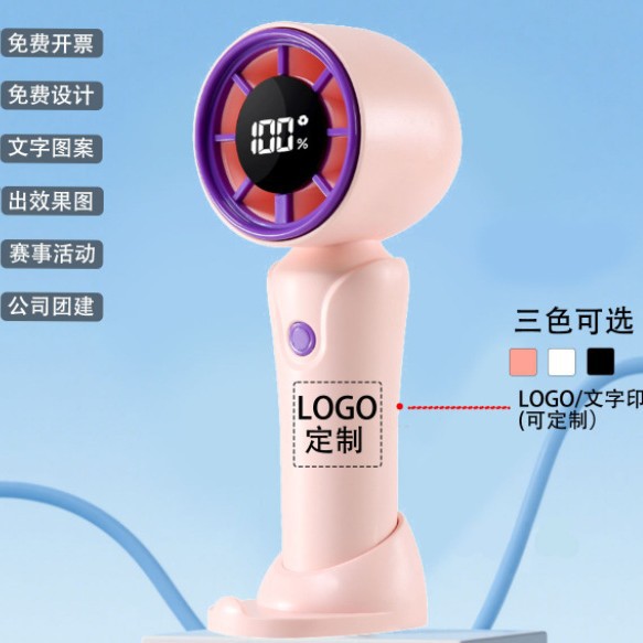 跨境手持风扇印刷logo充电迷你风扇随身带手机架大风力小型电风扇