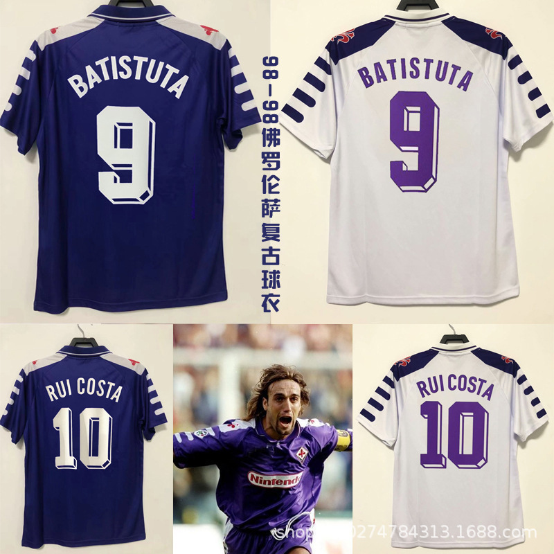 复刻版98-99年佛罗伦萨复古老款球衣 巴蒂鲁伊科斯塔主客场足球服