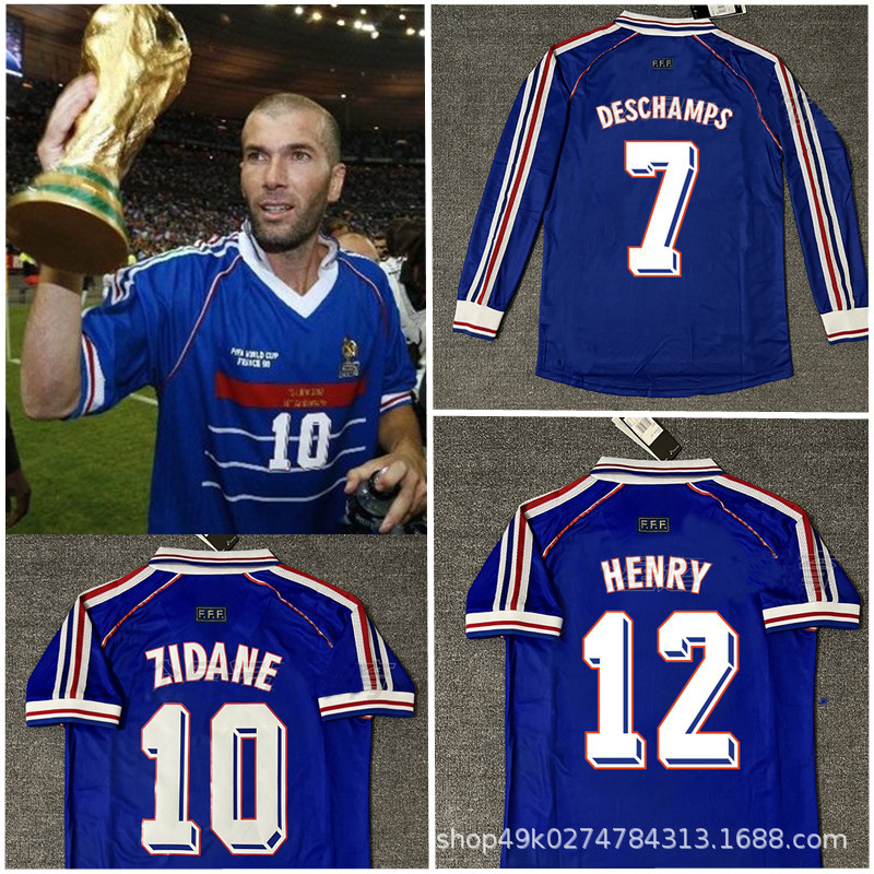 复古球衣1998法国世界杯主场短袖足球服10号齐达内12号亨利足球服