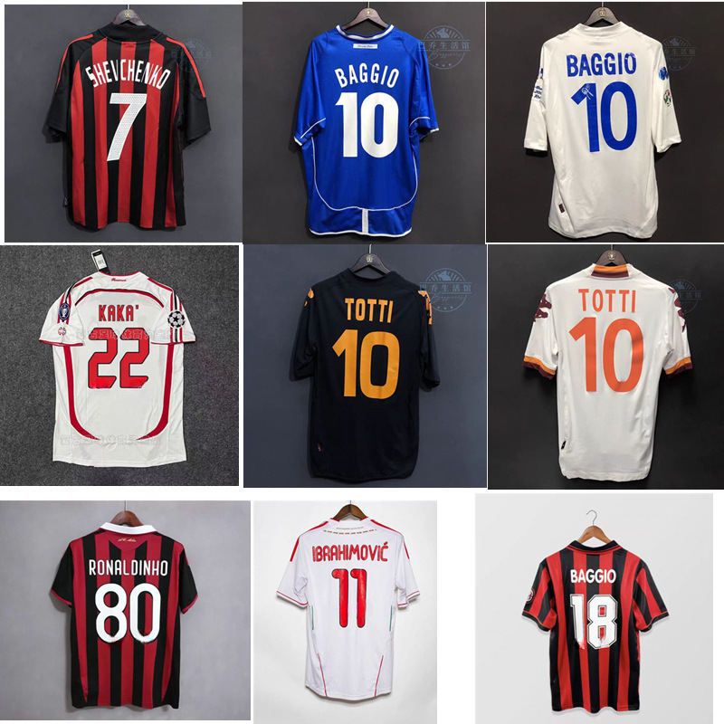 复古球衣足球服经典AC国米卡卡巴乔小罗纳尔多马尔蒂尼托蒂球衣