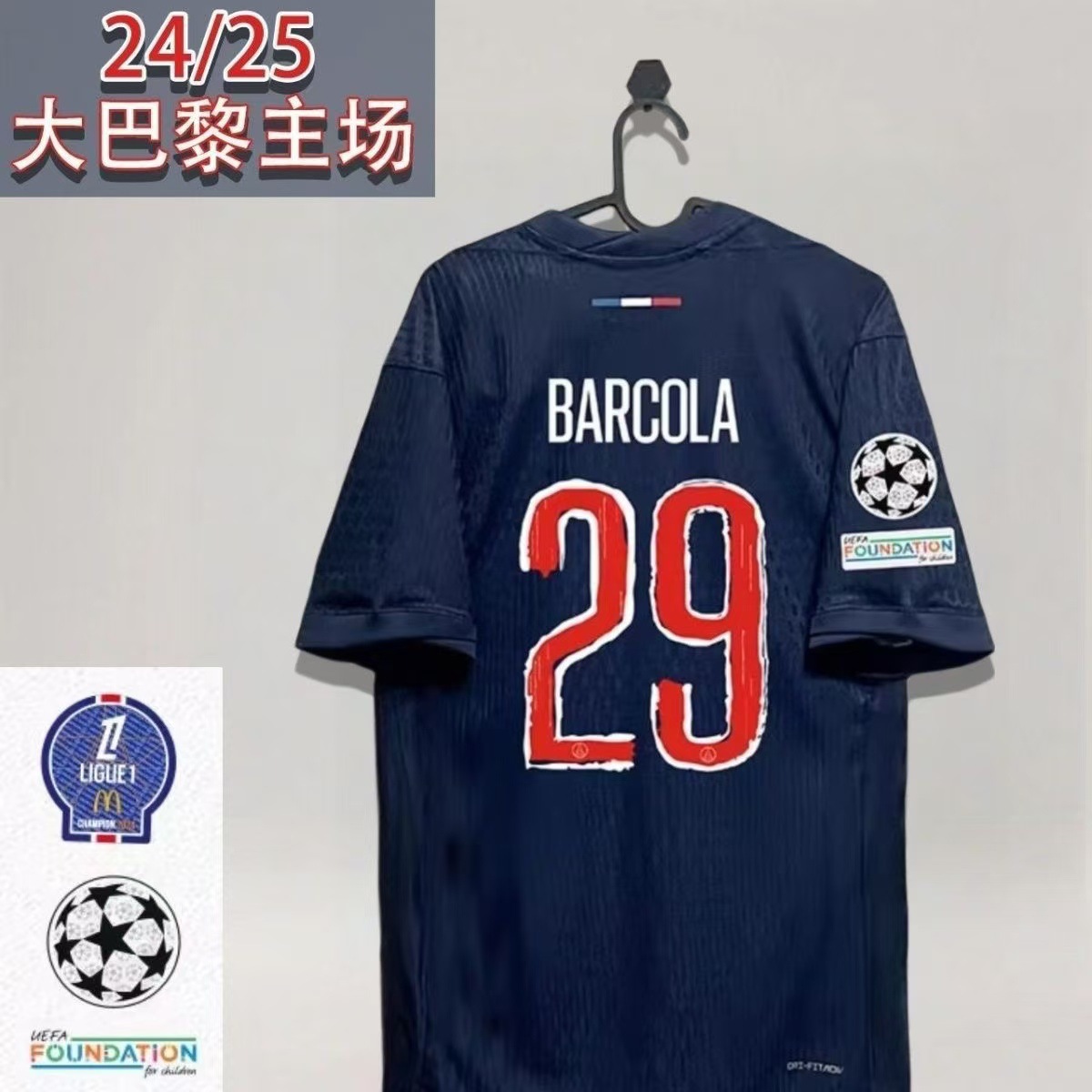 球员版欧冠决赛2425巴黎主场球衣10号登贝莱14号杜埃球迷版足球服