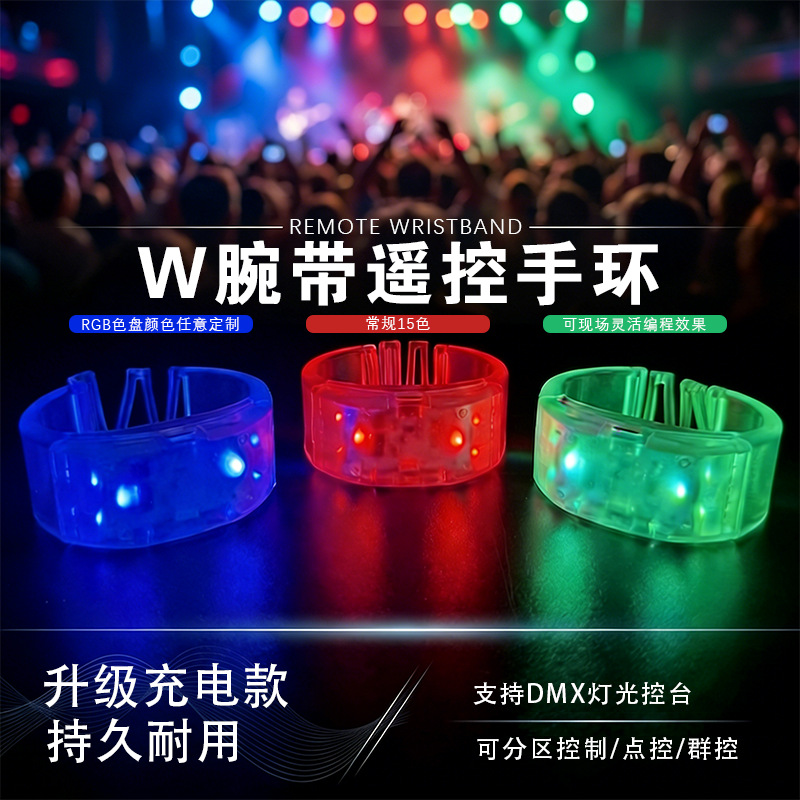 厂家新款发光W遥控手环USB充电长续航LED发光手环演唱会应援手环