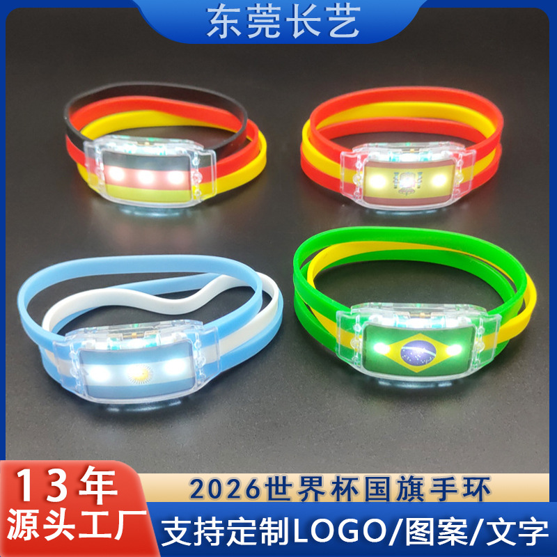 2026新款世界杯发光手环球迷助威道具硅胶手环可印LOGO国旗手环