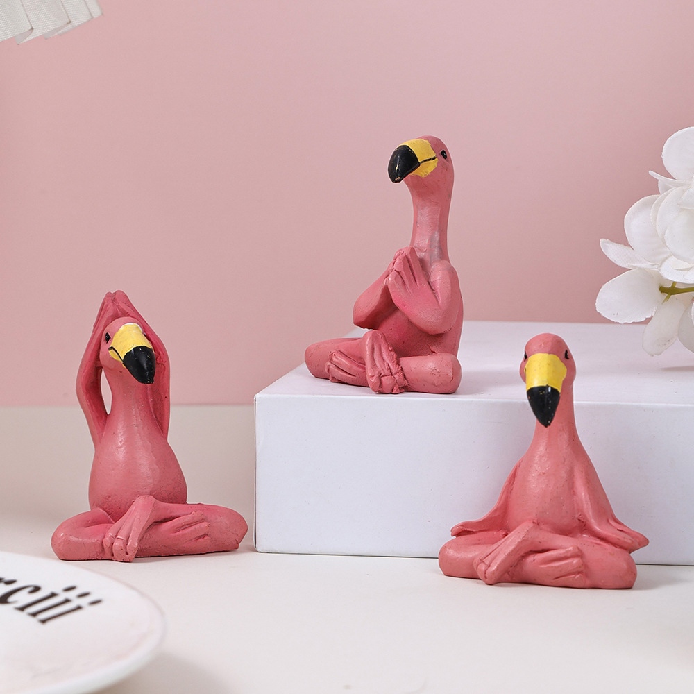 韩式创意火烈鸟迷你雕像瑜伽可爱摆件桌面花园装饰品树脂工艺品