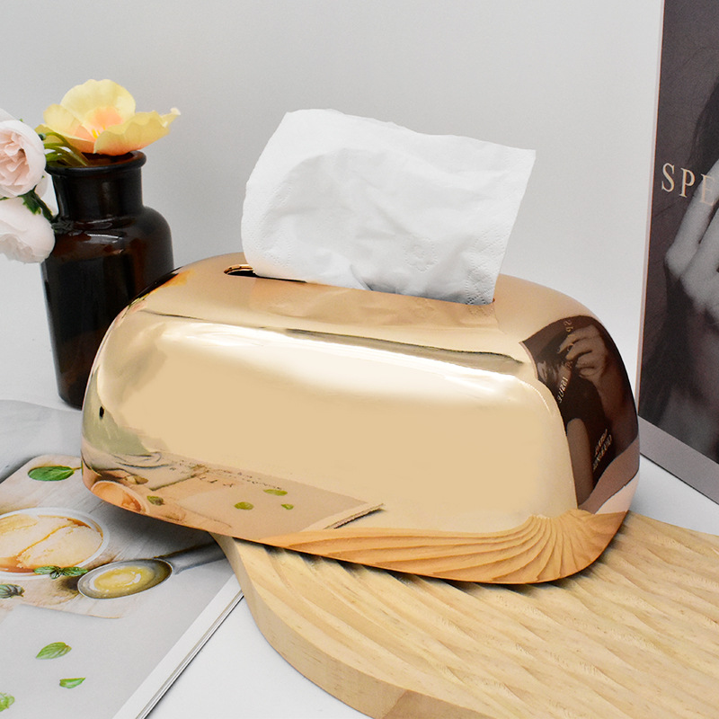 轻奢金色亮面纸巾盒家居创意客厅收纳车载简约纯色餐巾抽纸盒现货