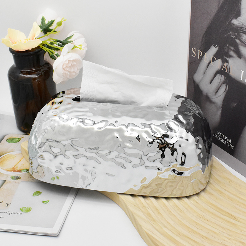 欧式轻奢波纹纸巾盒客厅餐桌茶几收纳简约塑料电镀餐巾抽纸盒批发