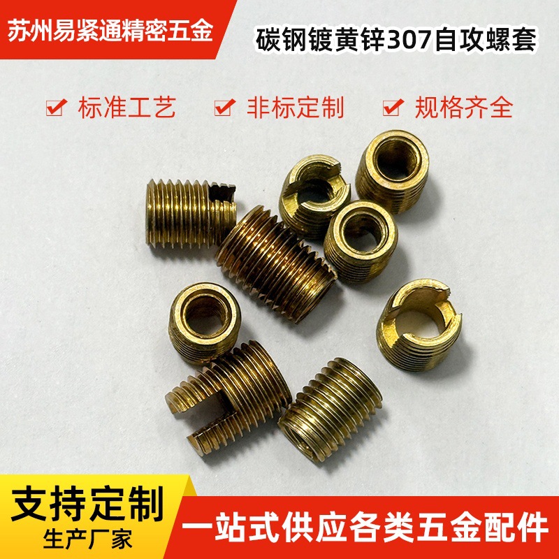碳钢镀黄锌307自攻螺套三孔开槽开圆孔型开槽自攻螺套内外牙转换