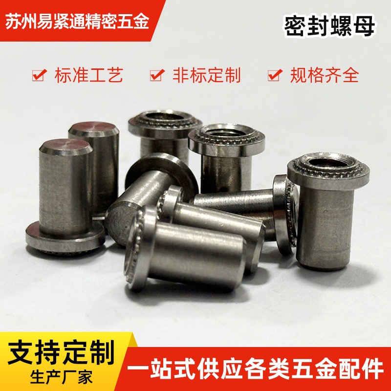 304不锈钢密封螺母柱盲孔新能源外壳防水压铆螺母批发BS不锈钢