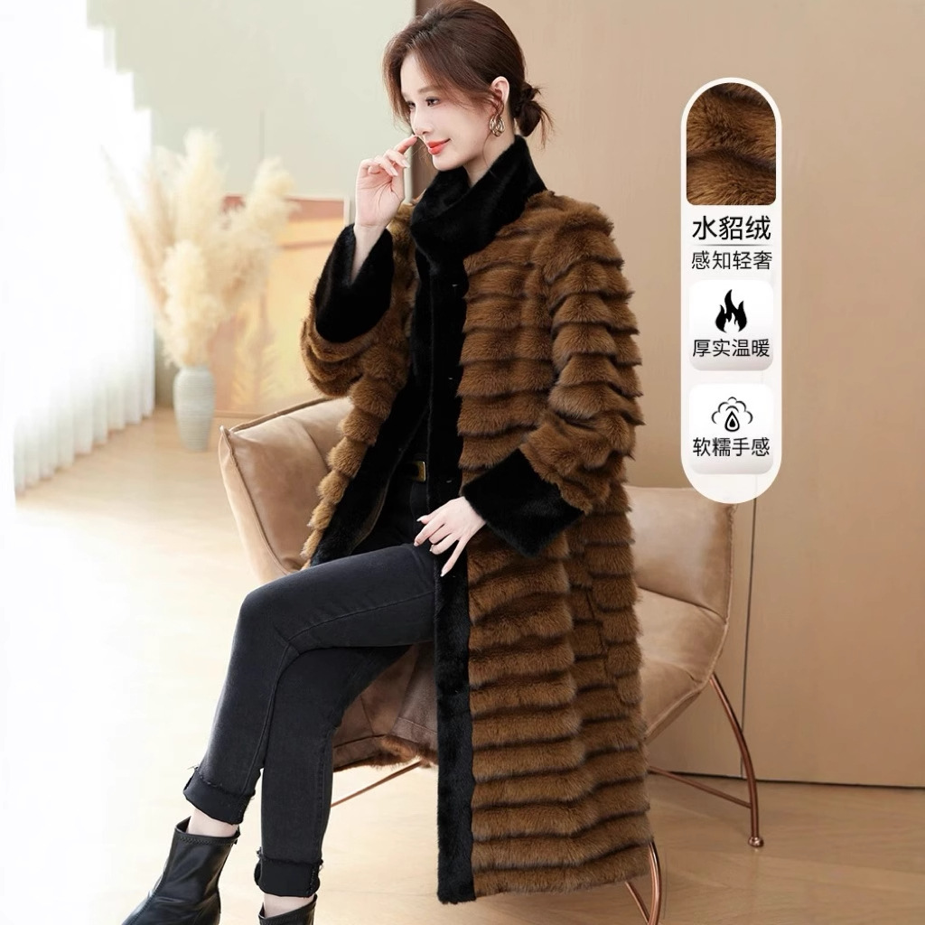 妈妈时尚皮毛一体外套水貂绒皮草高贵中长款大衣中老年女冬季大衣