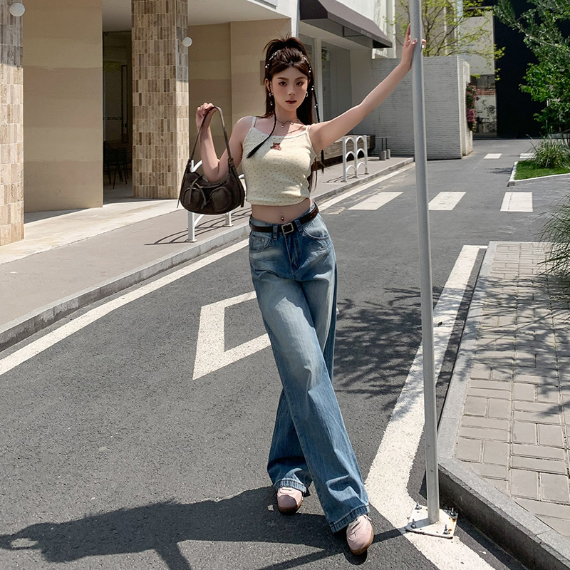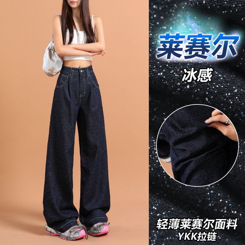 天丝满天星蓝牛仔裤女新款高腰显瘦阔腿裤淑女风百搭宽松拖地