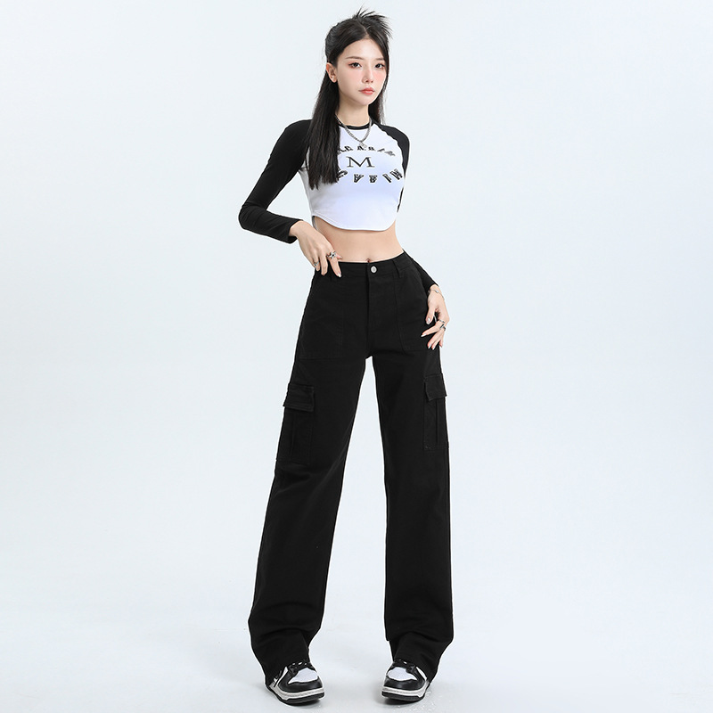 美式黑色工装裤女2025春秋新款机能登山伞兵裤高腰休闲直筒阔腿裤