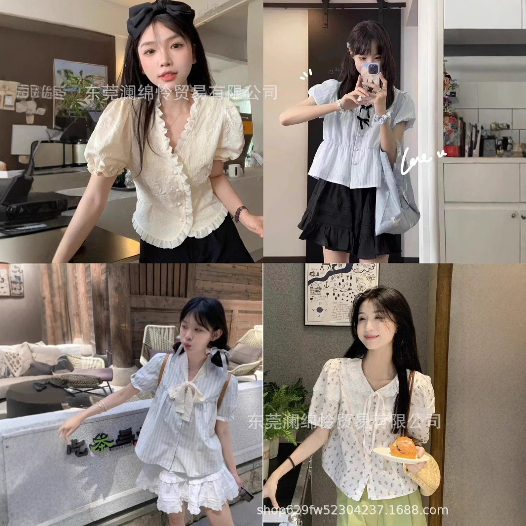 短袖女2025新款爆款夏季泡泡袖碎花减龄洋气短款雪纺上衣夏款