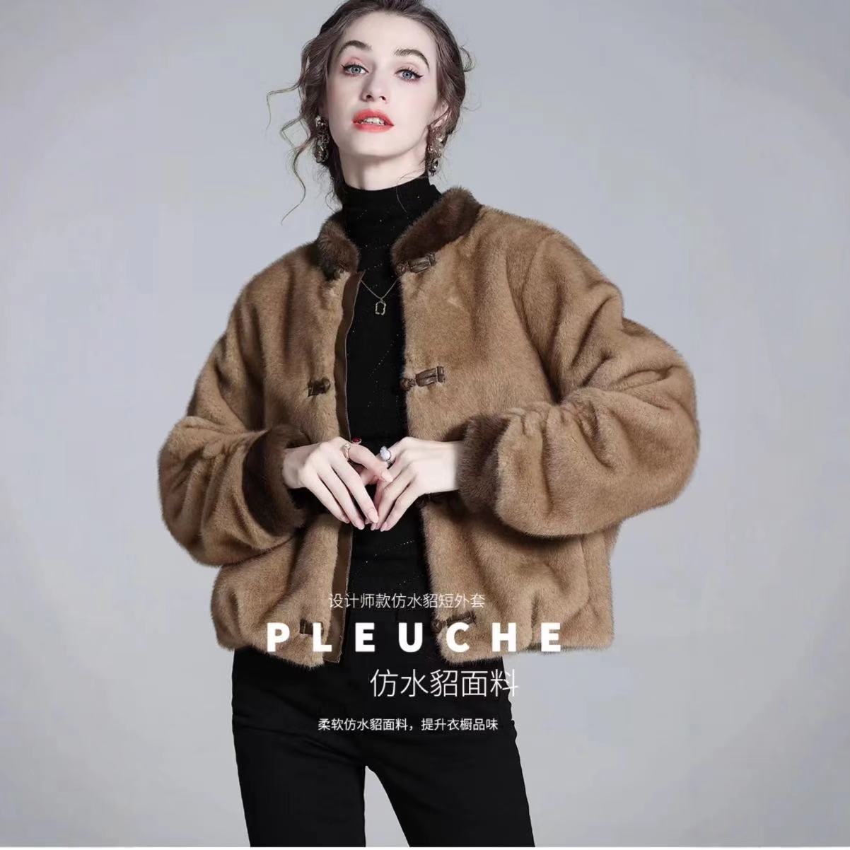 新中式盘扣海宁皮毛一体短款立领皮草大衣仿水貂绒外套支持定制