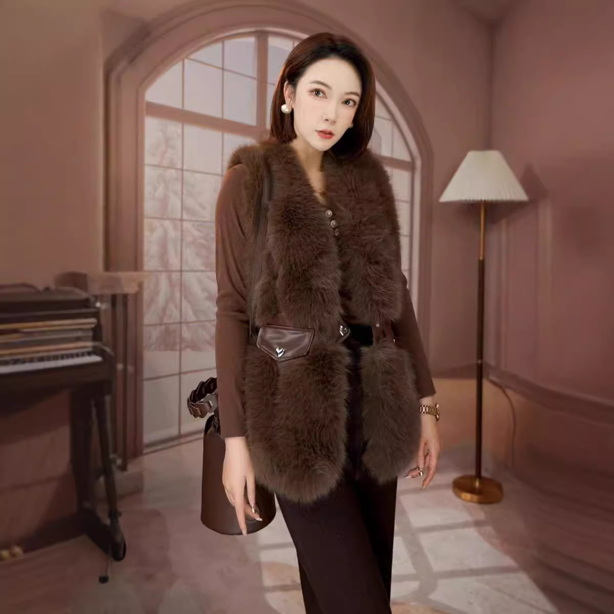 2025冬季新款皮外套马甲女士加厚仿狐狸毛中长款高级感新款毛绒绒
