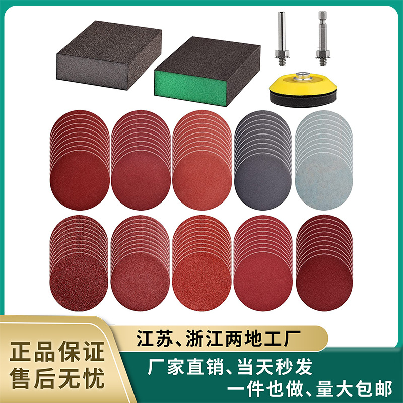 跨境背绒砂纸海绵砂块104件套装自粘盘3寸75mm干磨水磨植绒打磨片