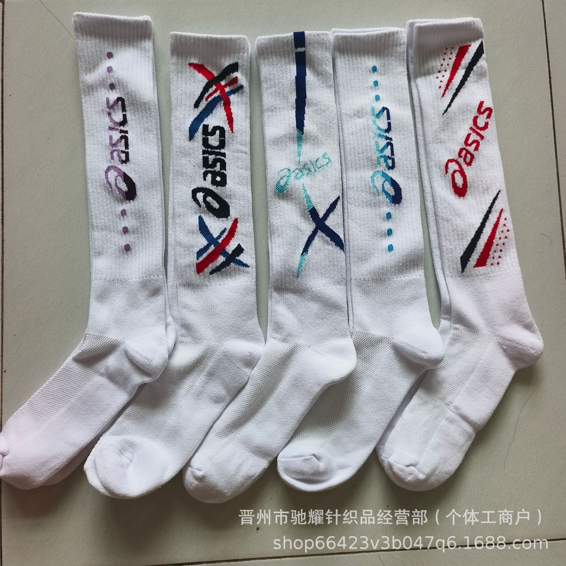 爱世克斯白色高橡筋男女学生款排球运动联赛款棉质长筒毛巾底袜子