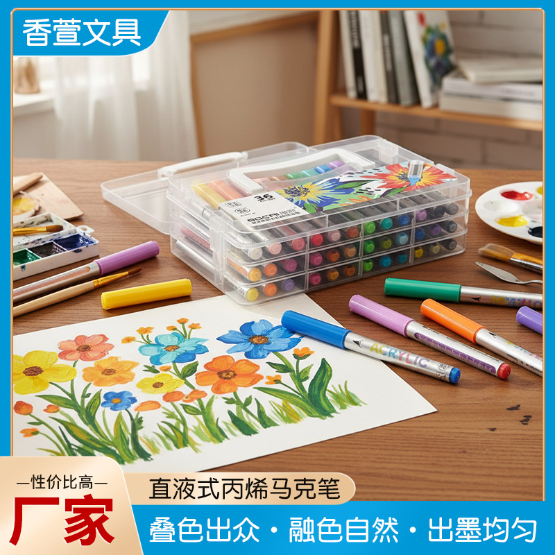 直液式丙烯马克笔24/36/48/60可叠色丙烯马克笔绘画DIY涂鸦画笔