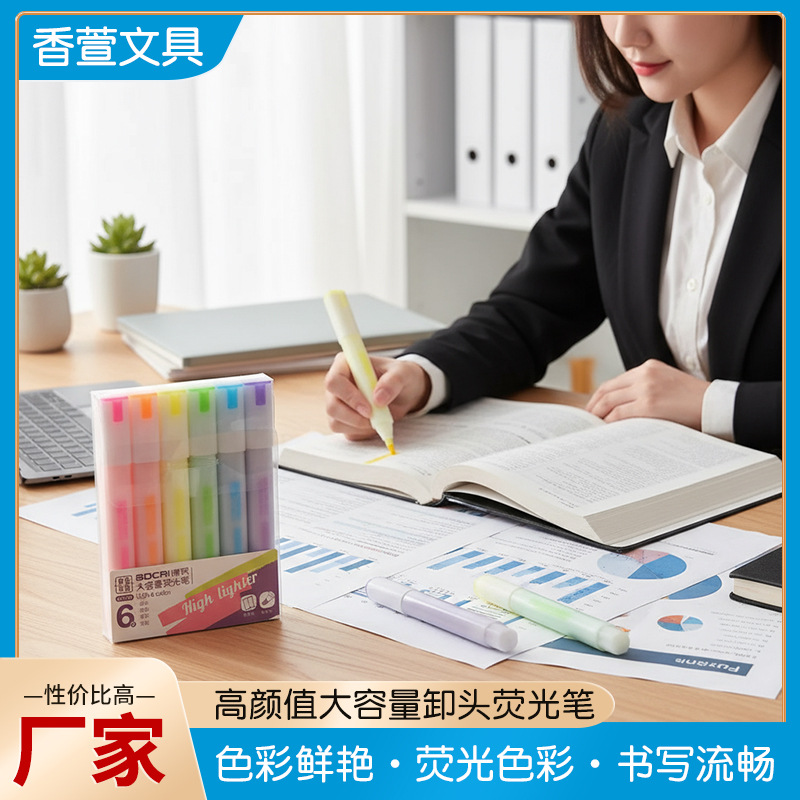 高颜值大容量斜头荧光笔学生绘画做笔记使用儿童手账速干水彩笔