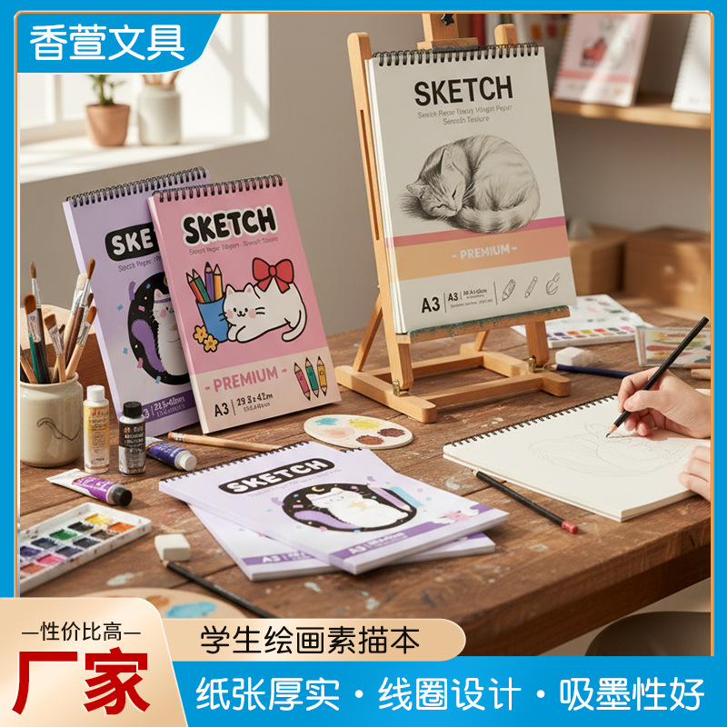 工厂供应A3加厚素描本160G 24张可爱卡通猫咪 学生儿童素描绘画本