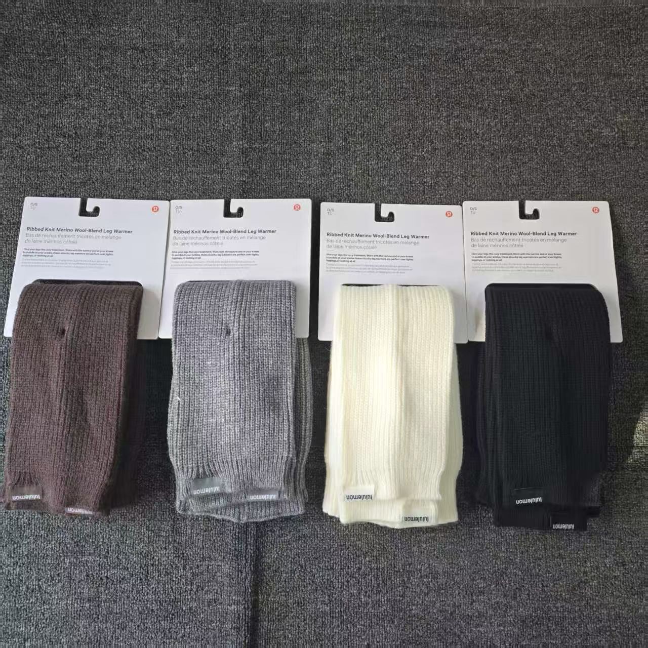 秋冬lulu羊毛混纺罗纹针织保暖腿套瑜伽刺绣时髦纯色显瘦美腿袜套