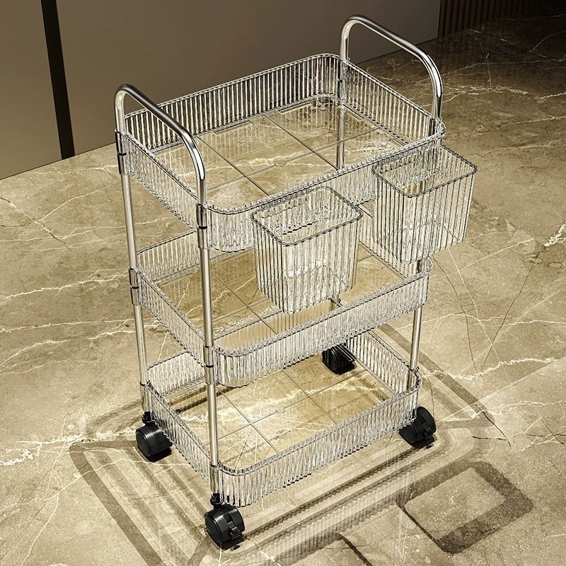 透明亚克力小推车置物架床头零食卧室落地移动多层化妆品收纳架子