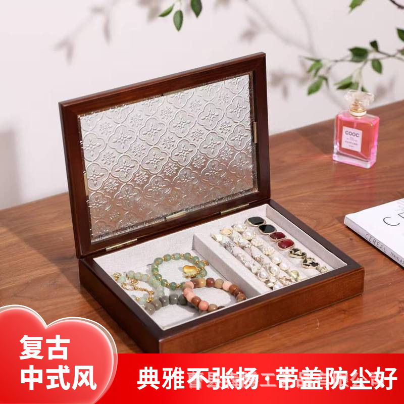 实木首饰盒项链戒指耳环耳钉饰品盒生日礼物收纳盒摆摊柜台展示盘