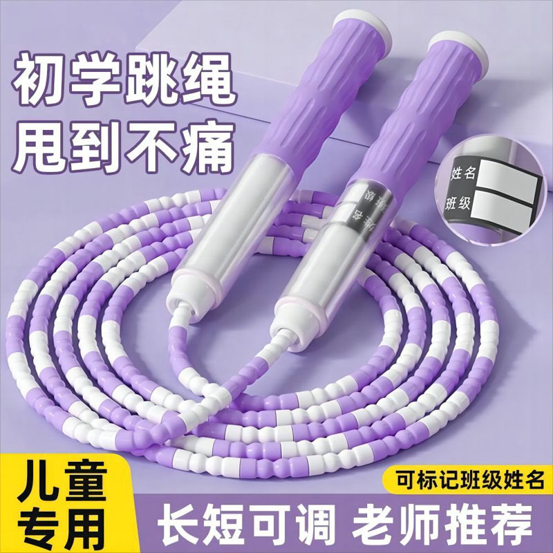 儿童初学者跳绳小学生中考标准儿童软竹节跳绳可写姓名班级可调节