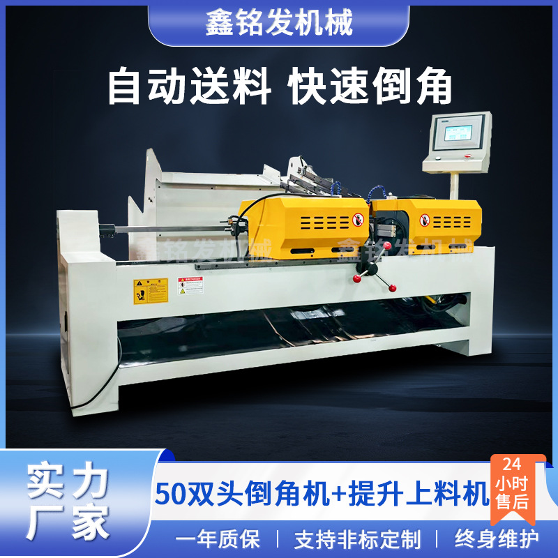 气动50双头倒角机搭配管材提升机自动送料钢管铜管端面平头倒角机