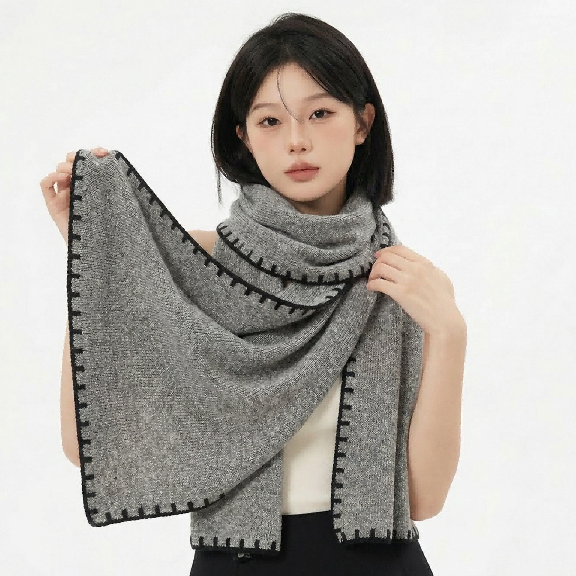 包边撞色山羊绒围巾休闲保暖纯色男女秋冬羊绒围脖定制logo