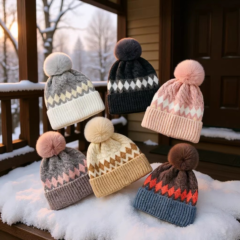冬季简约加厚加绒防风百搭菱形绞花针织帽女款emis帽子