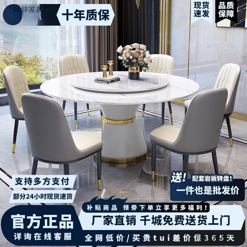 意式岩板圆桌组合现代简约小户型轻奢大理石家用圆形电磁炉餐桌