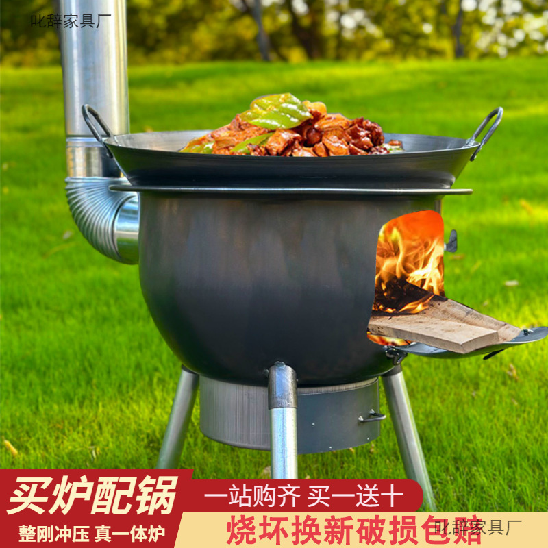 新款一体柴火灶农村家用烧木柴户外便携柴火炉多功能无烟大锅台