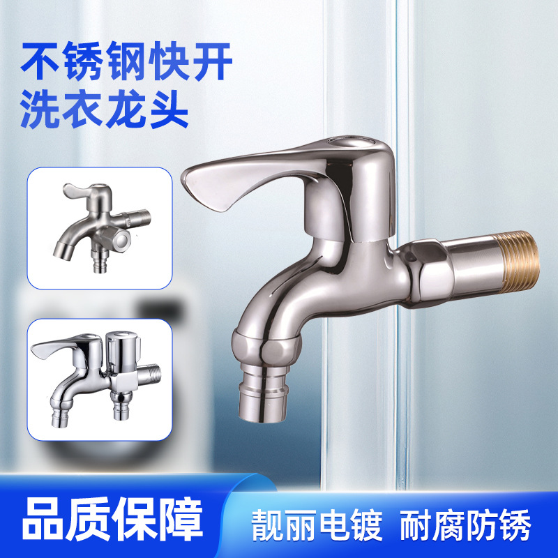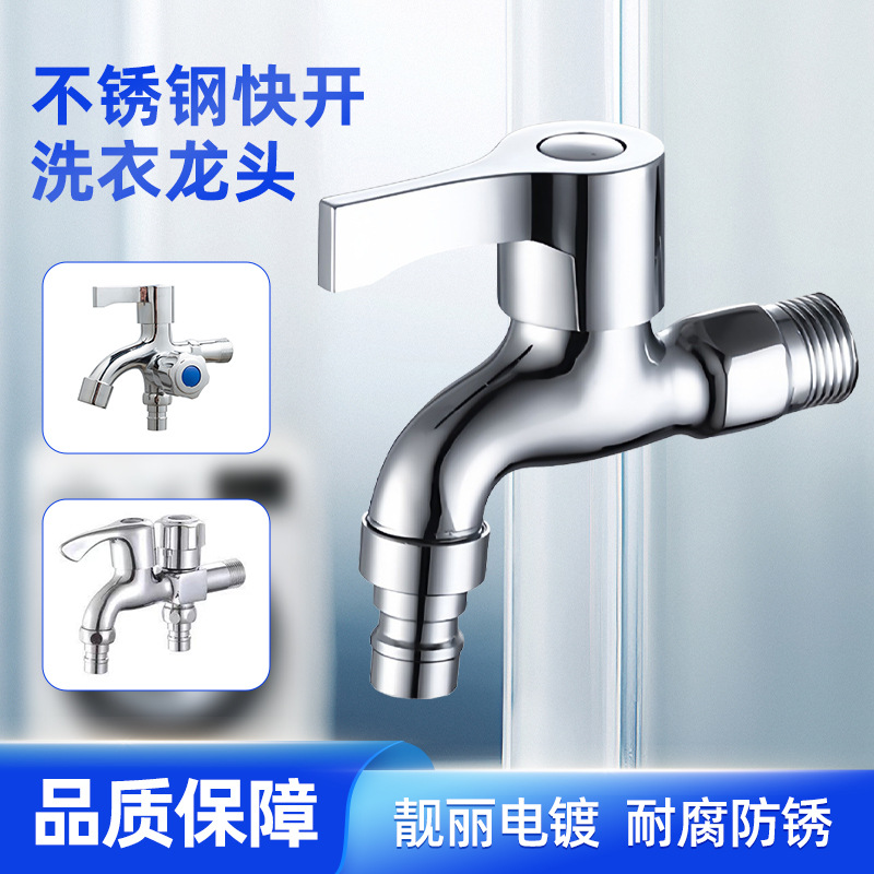 洗衣机水龙头铜4分户外快开加长水嘴304不锈钢水龙头一进二出龙头