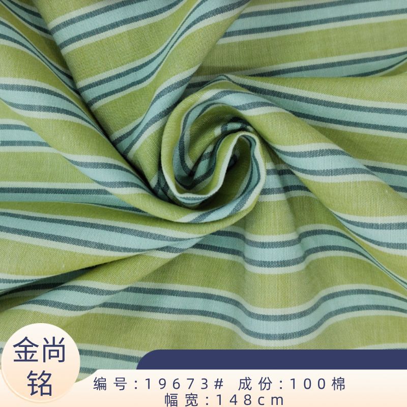 春夏新款全棉色织条纹衬衫面料 绿色系条子衬衫布料