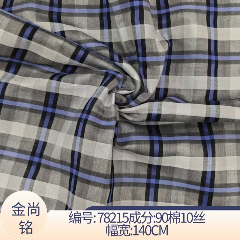 春夏推荐真丝棉混纺格纹面料 真丝格子衬衫布料