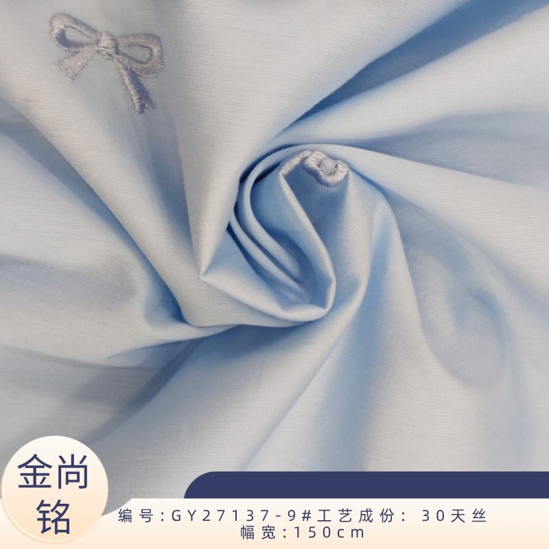 天丝底蝴蝶结绣花衬衫面料 绣花工艺时尚春夏款