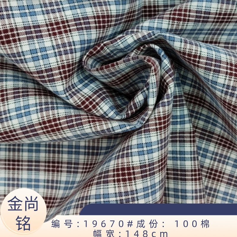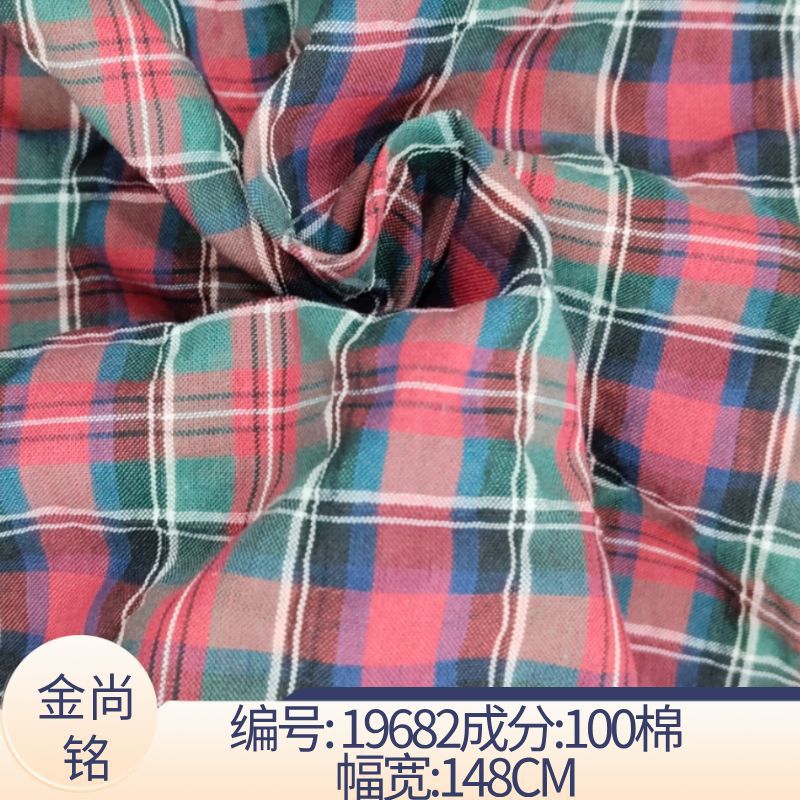 现货供应全棉格子衬衫面料 红色元素大方时尚
