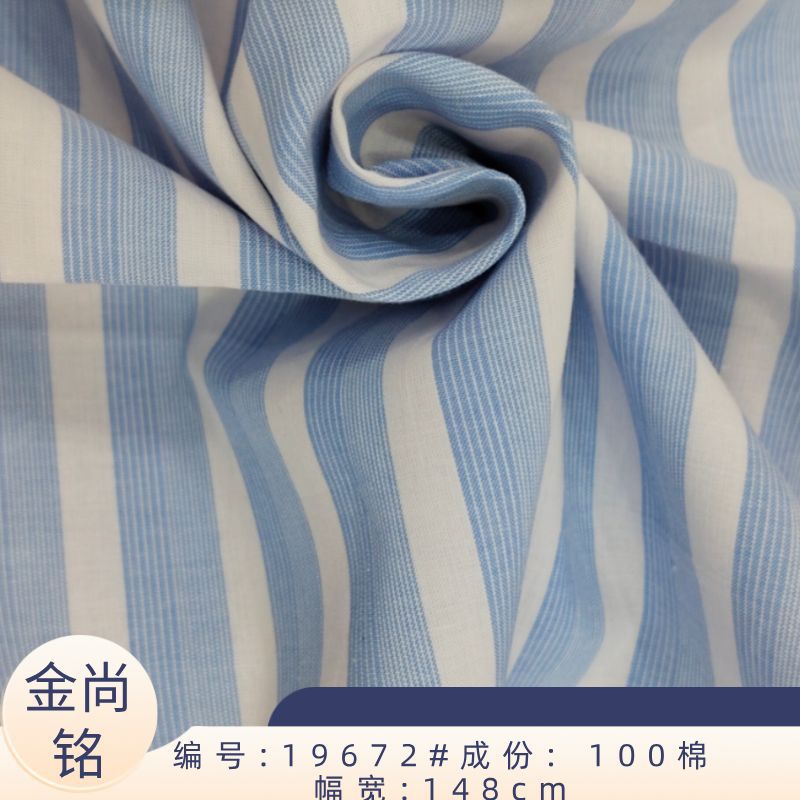 全棉色织条纹衬衫面料 全棉蓝条色系春夏